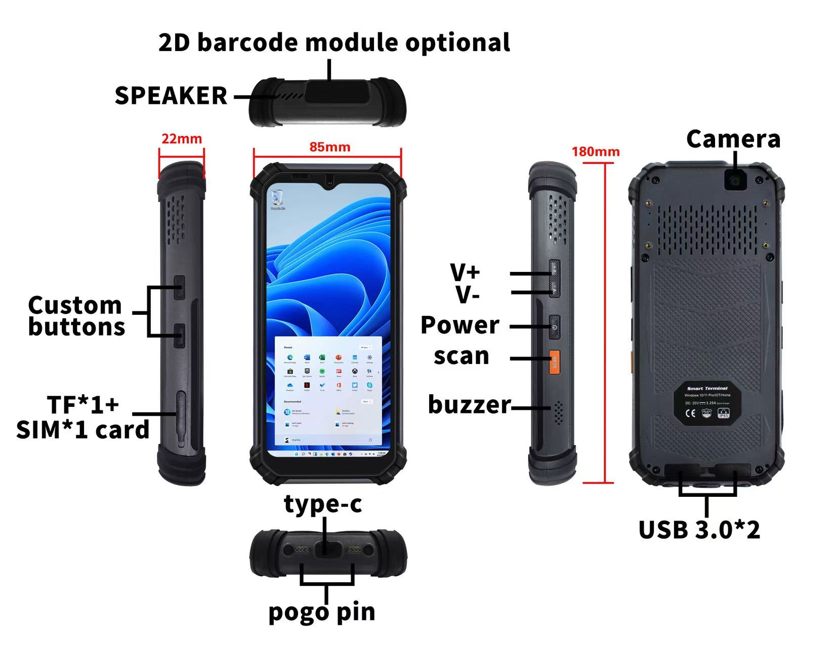 The Hotus SH6 is a 6.5-inch rugged handheld tablet powered by the Intel N100 processor, balancing high performance and portability for professional mobile work. Designed for long hours of field use, it delivers stable computing power for data collection, barcode scanning, and industrial management software.